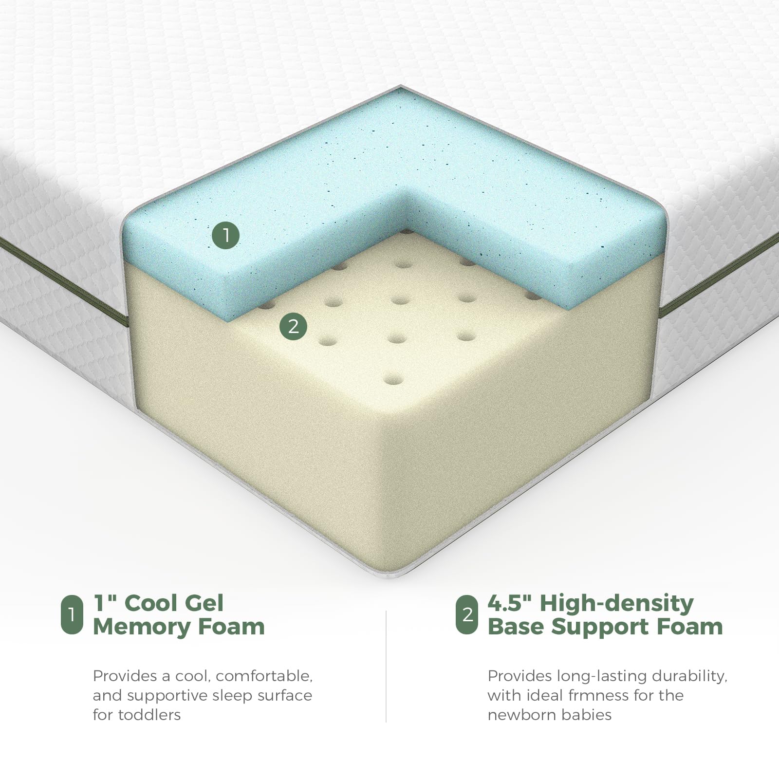 - ✔️【Safety and Hypoallergenic Assurance】: We prioritize your baby's health and safety. All the foams used in this mattress carry the CertiPUR-US certification, ensuring they are free from harmful chemicals such as phthalates, lead, and mercury. Coupled with a skin-friendly and hypoallergenic outer cover, this mattress creates a healthy and secure sleeping haven for your baby. The removable, machine-washable cover also simplifies the task of keeping the mattress clean.